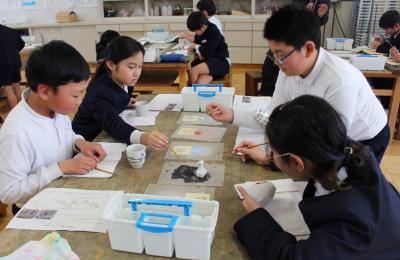 九谷焼絵付け講座では、日本の代表的な色絵陶磁「九谷焼」についての講話を聴き、一人一人が「湯呑み」に絵付け体験をします。