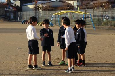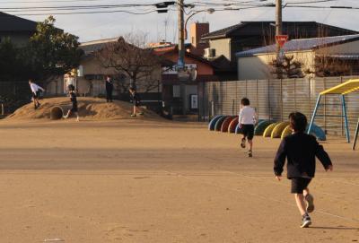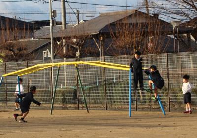 久しぶりの冬の晴れ間で、朝学習が始まるまで、子供たちは元気に運動場で遊んでいました。