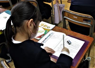 しっかりとお手本を見ながら、丁寧に書いていました。