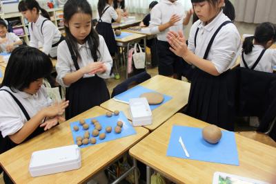 今日の課題は、<ねん土の形をかえたとき、物の重さはかわるだろうか>です。