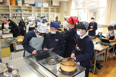 昨日、5年生が調理実習を行いました。