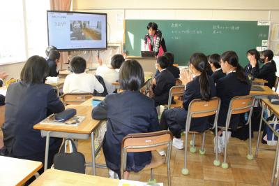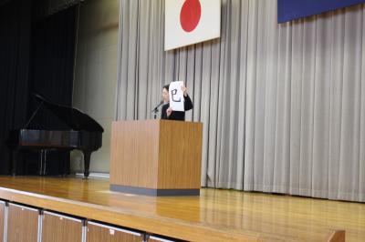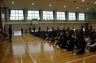 次に、生徒指導の先生から、マナーアップ週間についてのお話がありました。「3学期にいいスタートがきれるように、次の5つのことをみんなで守っていきましょう」というお話でした。