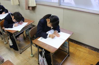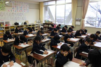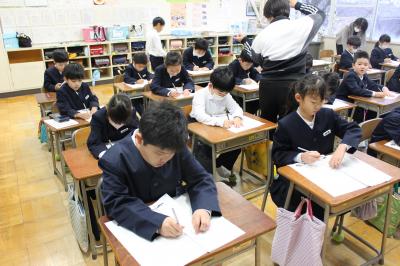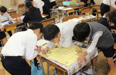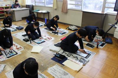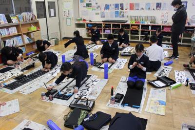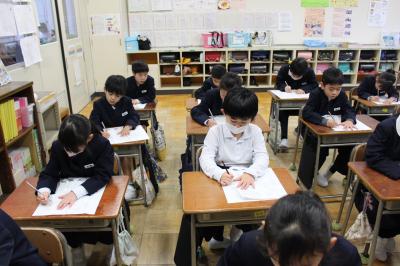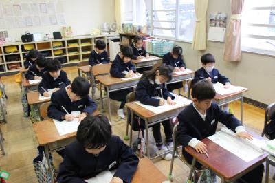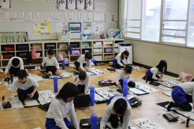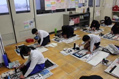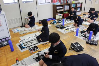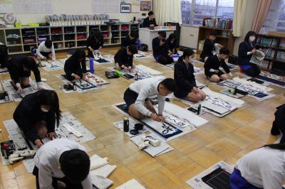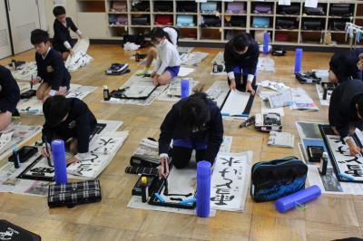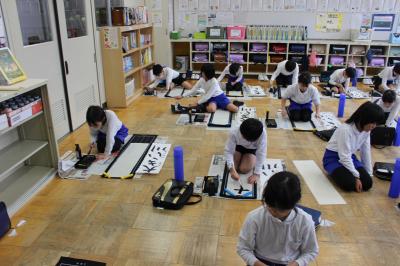 どのクラスも、落ち着いたとてもよい雰囲気の中、書き初めをすることができました。