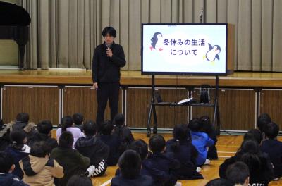次に、津田先生から「冬休みの生活」についてお話がありました。