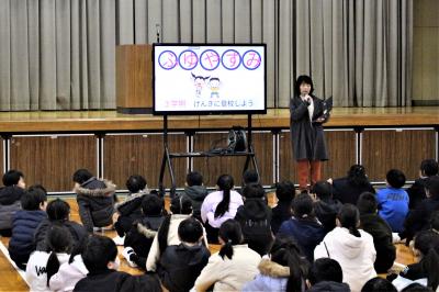 保健室の松下先生から、冬休みの健康についてのお話がありました。