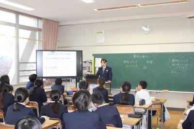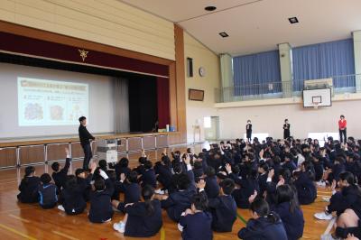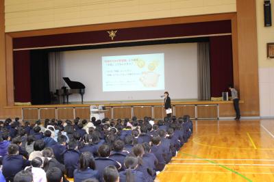 生徒指導の先生からは、お金の使い方についてクイズ形式でお話がありました。