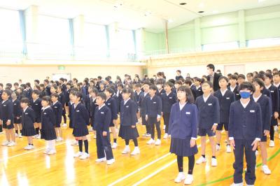 終業式では、校長先生が、2学期の始めに大切にしてほしいと話した「自立」「協働」「探求心」について振り返り、来年の干支、午(うま)のようにいろいろなことに挑戦し、飛躍していってほしいとお話しされました。