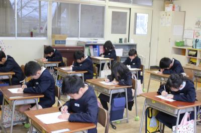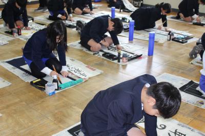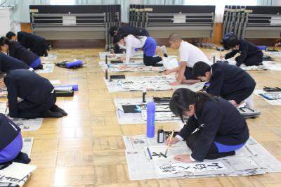 どの学年も落ち着いて、静かに書初め用紙に向かい、集中して取り組んでいました。