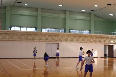 5年生は、ソフトバレーボールの練習をしていました。トスを意識して、まず相手にボールを決まったところにパスする練習や、ボールを地面に落とさないよう、走って取る基礎的な練習をしていました。かけ声をかけながら楽しそうにプレイしていました。