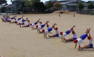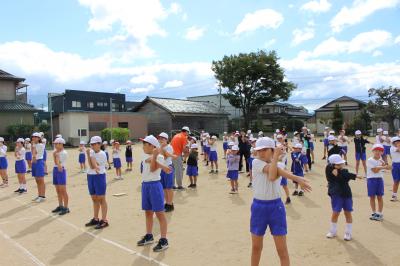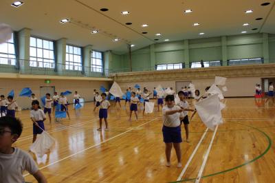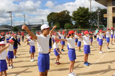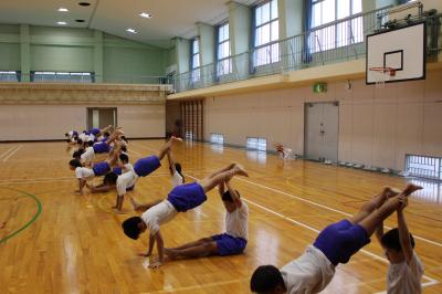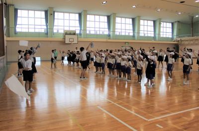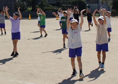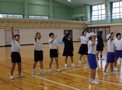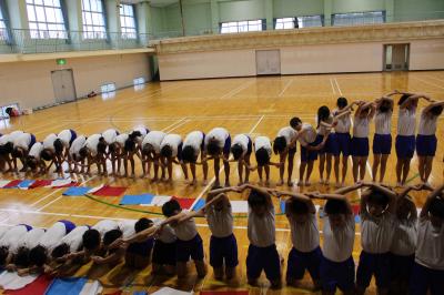 そして、整理体操の練習もしました。音楽と号令に合わせて、ストレッチをしました。