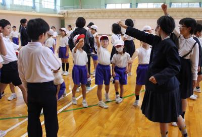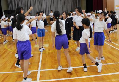 まずは、グループに分かれ、高学年が振りつけの指導をします