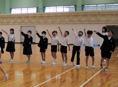 次に準備体操の練習をしました。1つ1つの動きに気をつけながら練習しました。