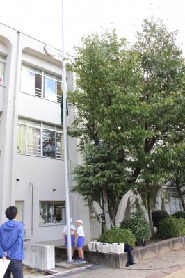 今日は、久しぶりに晴れたので、運動場で運動会の開閉会式の練習をしました。