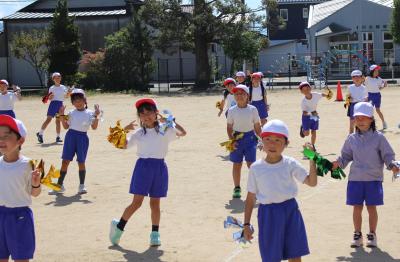 きれいなポンポンを手につけ、元気一杯踊ります。