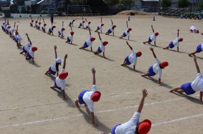 「表現発表会」では、各学年の発表を見て、良いところを伝え合い、運動会本番への意欲を高めます。
