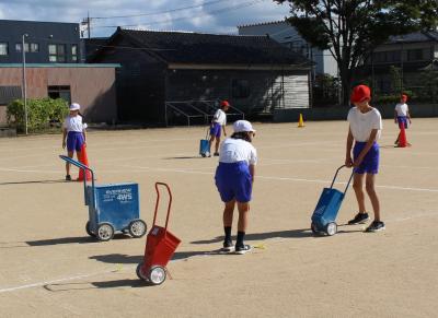 明日の運動会に向けて、高学年の5,6年生が午後から運動会準備を行いました。