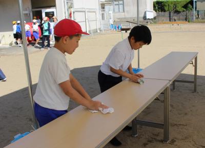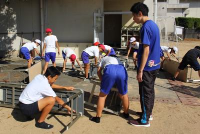 5、6年生皆さんの協力のおかげで、予定時間より早く準備が終わりました。
