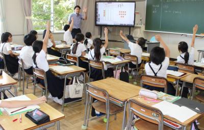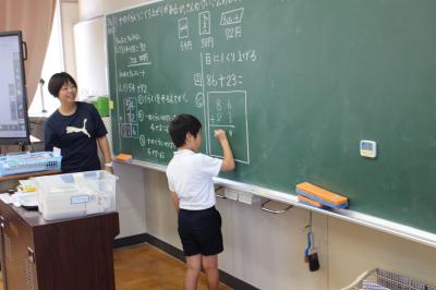 今日は、2年生が3年生の算数授業の様子を参観しました。