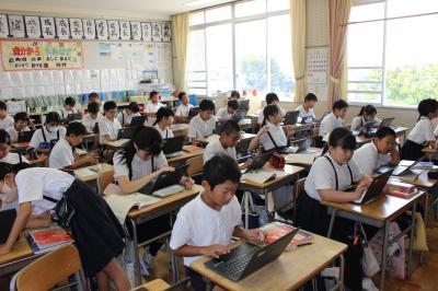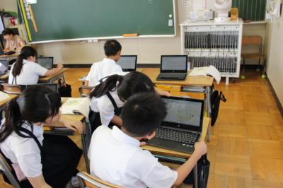 5年生は国語の授業で、「オクリンクプラス」という2学期から新しく入ったアプリを使って、詩の学習をしていました。子どもたちはすぐに使い方を覚え、様々な機能を使いこなしていました。