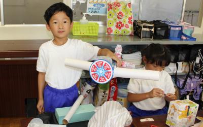 最初は、真剣な表情で何をつくろうか考えていた子どもたちも、形がだんだん出来上がっていくと、笑顔になり、休み時間も夢中になってつくり続けていました。