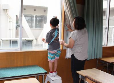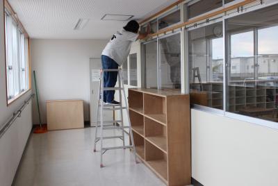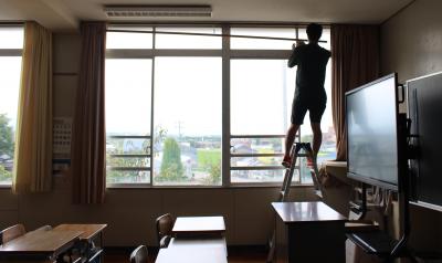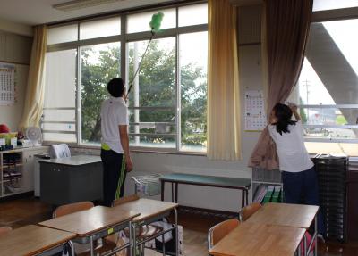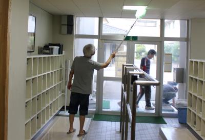 壱ツ屋と与九郎島地区は、校舎内の窓ふき、蜘蛛の巣払いです。