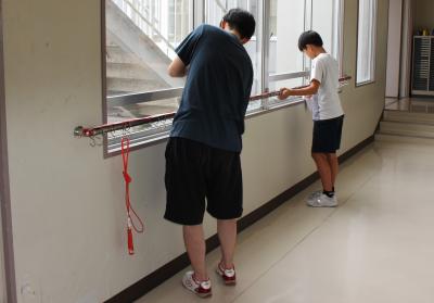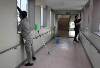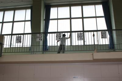 グリーンタウン地区は、体育館観覧席の窓ふきです。