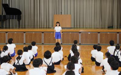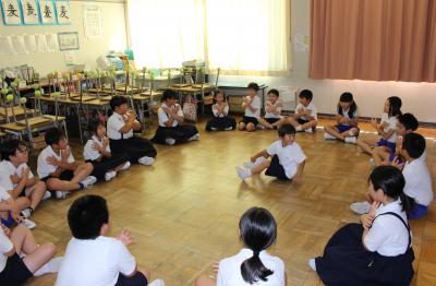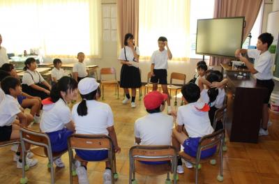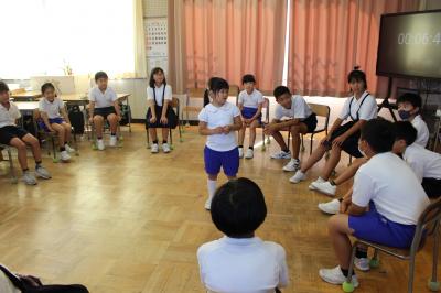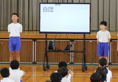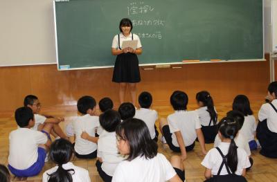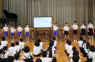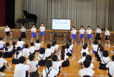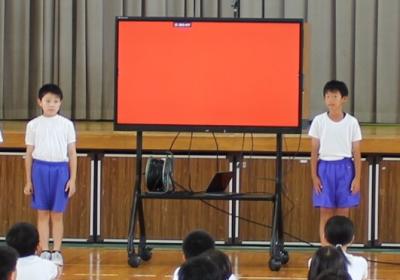 次に、各学年からの報告で、7月の生活目標の取組結果などを伝えていました。どの学年も生活目標が達成できるように工夫していました。