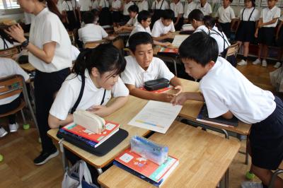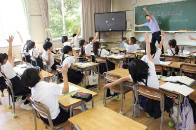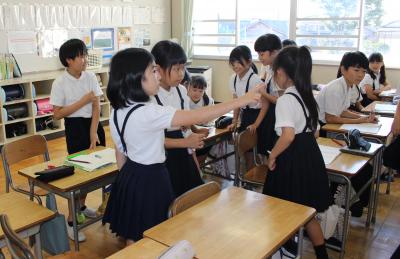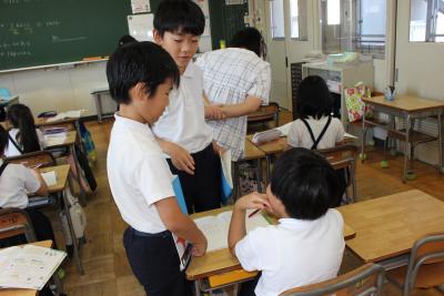 授業交流では、自分達の一つ上の学年の授業を参観し、良いところを取り入れ、自分達の授業をより良くします。