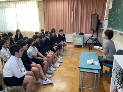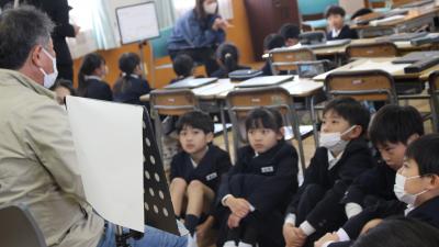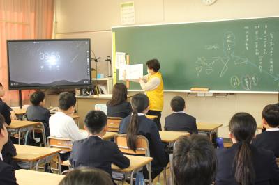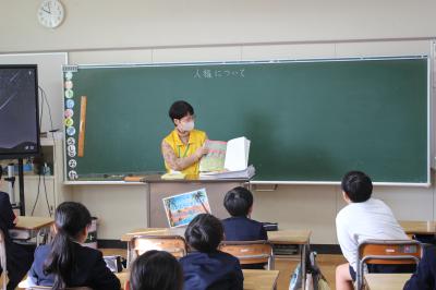 3年生と6年生のクラスに入っていただき、 3年生には身近な人たちへの人権のお話、6年生には平和な世界で平和に