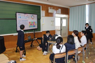 そこで、10日と11日の2日間、長休みと昼休みを使って6年生がお店を開いてくれました。6年生は「SDGs」をテーマ