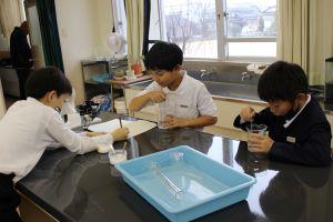 理科では、見通しをもって実験を行い、問題解決能力を育てるとともに、実感を伴った理解を図り、科学的な見方や考え方を養っていきます。