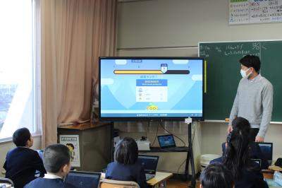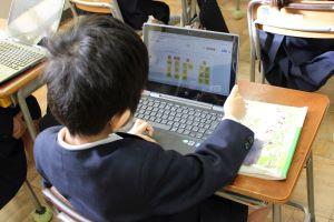 4年生では算数の授業の始めに、クロームブックを使って計算練習等をしています。