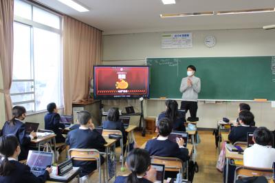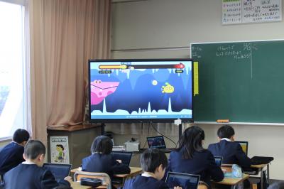 ゴールすると、クラスの中の誰かが指名され、その人のクロームブックにうつっている形を全員が押すことができると、さらにポイントが入り、レベルアップしていきます。レベルは小さい魚からだんだん大きな魚になっていきます。前回は「イワシ」でしたが、今回は「マス」までレベルアップしました。