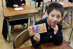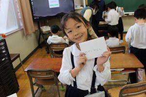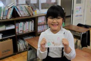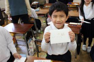 できあがった手紙をもって、「ハイ、にっこり!」