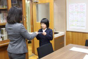 金曜日、昼休みに校長室で一人一人に、表彰状を渡しました。