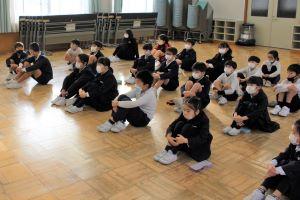 まず最初に、体育館に集まる態度、待つ態度について、褒めました。