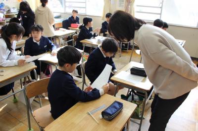 「ありがとうの気持ち」や「これからがんばりたいこと」など、心を込めて、1字1字ていねいに書いています。