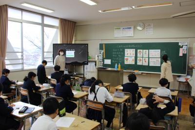 今日、川北中学校の栄養士の中尾先生においでいただき、3年生が食育授業を行いました。