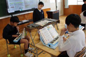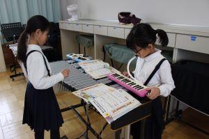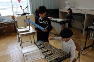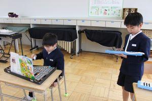 鉄琴と鍵盤ハーモニカのパート練習をしてから、合わせています。
