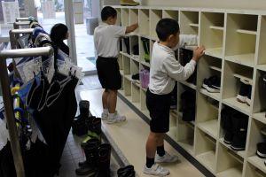 玄関に行くと、4年生が下駄箱の掃除をしていました。