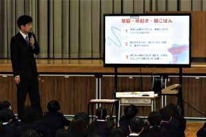 次に、保健室の松下先生から、冬休みの健康についてお話がありました。