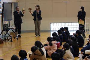 そのあと、大谷翔平選手から届いたグローブの紹介と添えられていたカード「野球しようぜ!」と手紙の説明をしました。