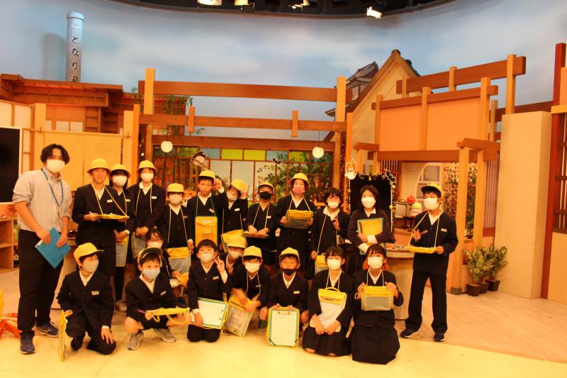最初にテレビ金沢の見学を行いました。普段、見ることができない場所であったり、逆によくテレビで見る場所に行き、全員楽しみながら学ぶことができました。