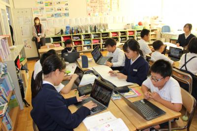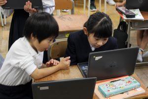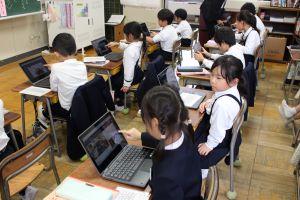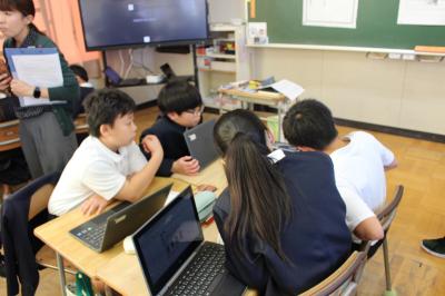 ほとんどの学級でクロームブックを使った授業が行われていました。子どもたちも操作に慣れてきていて、自在に使いこなしている印象でした。