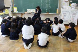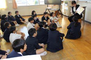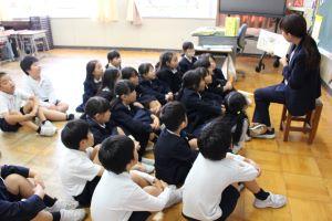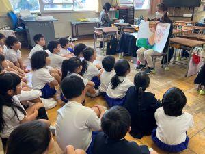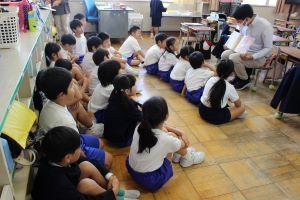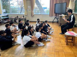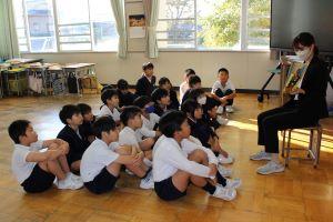 違う学年の先生から、おすすめの絵本を読み聞かせしてもらい、どのクラスも興味津々に聞いていました。