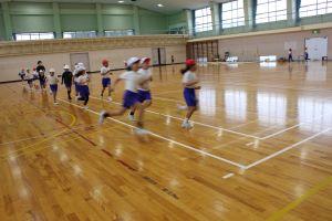 今日は、雨が降ってきたため、2年生は体育館で走っていました。