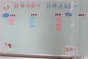 めあてが達成した児童は、児童玄関前に名前を貼りだします。