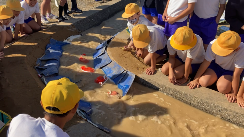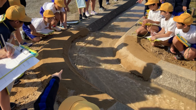 補強した堤防に水を流してみると,守れた部分もありましたが,別の部分が壊れてしまうこともあり,洪水から町を守る難しさや実際の堤防のすごさを実感していました。