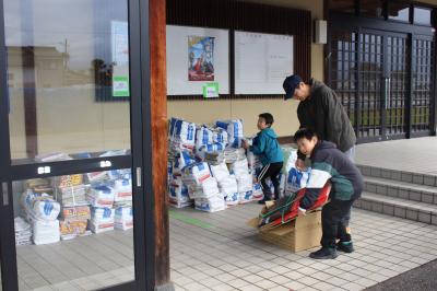 21日は、小雨の降る中でしたが、各地区ごとに保護者の方と児童が一軒一軒家を回って、新聞紙や段ボールなどを回収してくれました。