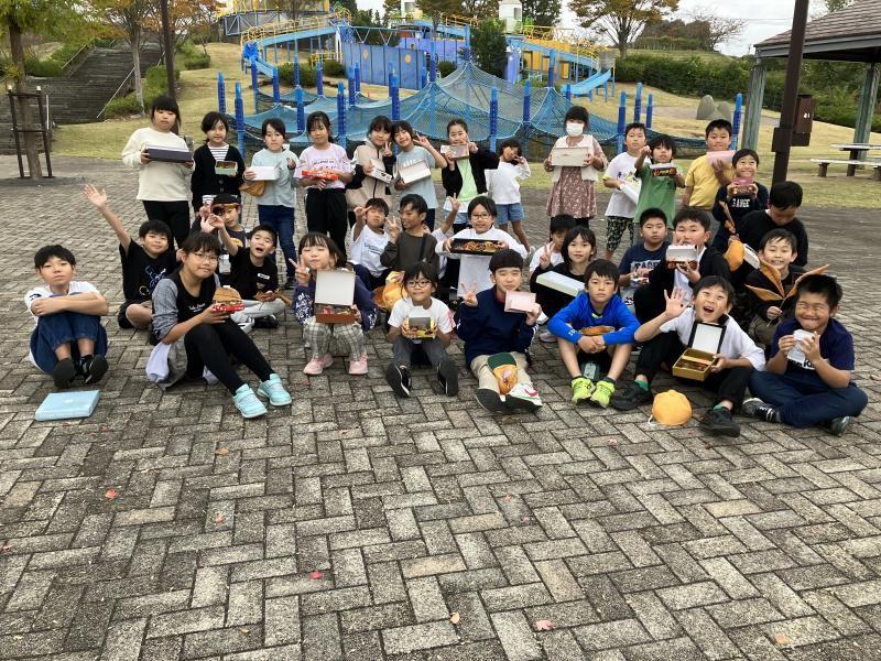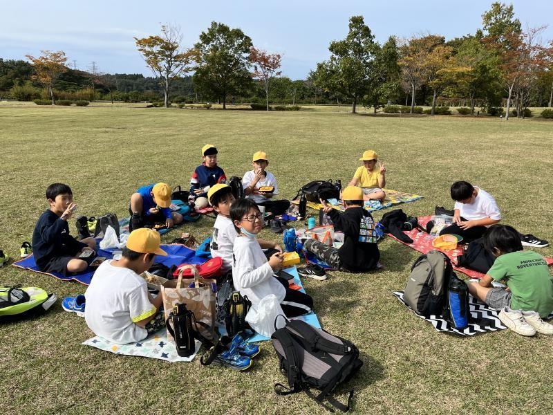 戸室スポーツ公園に着いたら、お待ちかねのお弁当。「いただきます!」